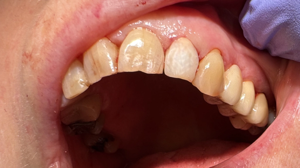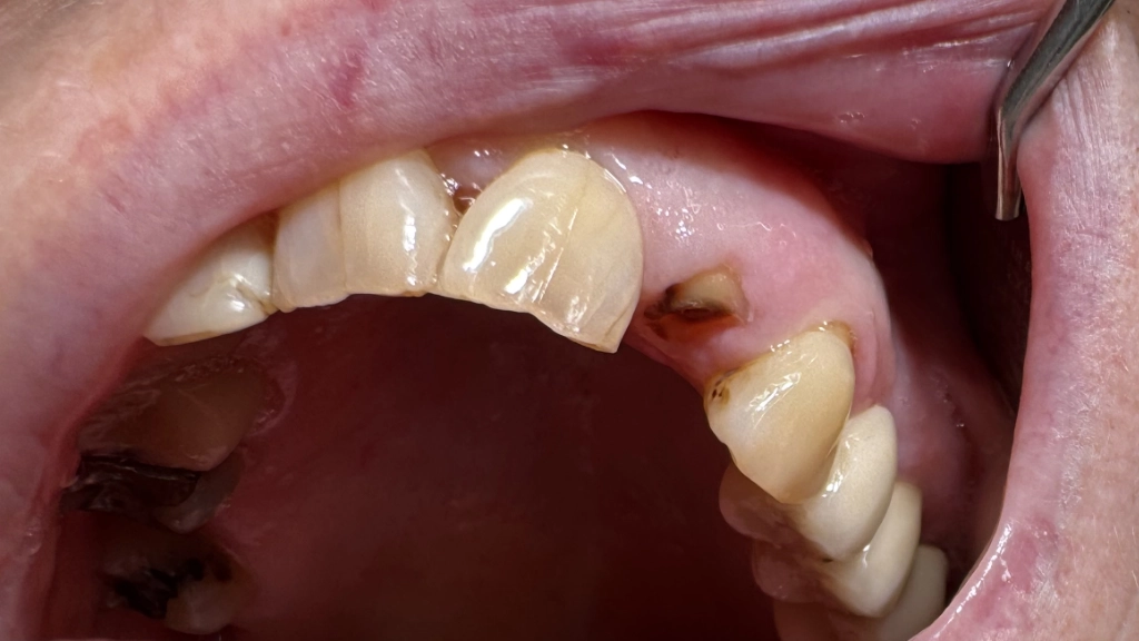 Je zit een lekker broodje te eten en die zwaar gevulde voortand breekt af, geen leuk zicht! Helaas is er te weinig tandmateriaal voor een kroon... Je staat nog midden in het leven: de levensduur van een brug (15 jaar gemiddeld) vind je terecht te kort. Daarnaast worden de (bijna) gave buurtanden bij een brug beschadigd: er moeten immers kronen op. Daarvoor wordt 1-1.5mm van je kostbare glazuur weggeboord. Een uitneembaar plaatje is goedkoper, maar hierdoor wordt je verhemelte bedekt. Eten smaakt minder en dat losse verhemelte? Nee.