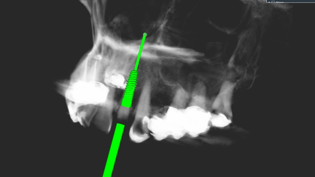 De röntgenbeelden worden met dit model en de waxup samengevoegd: de positie, implantaatlengte en -breedte worden bepaald:
