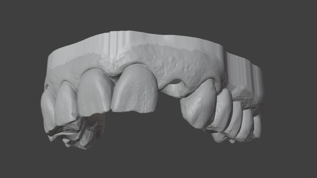Hier zie je hoe we de symmetrische tand gebruikt hebben als model. De uiteindelijke vorm wordt door de tandtechnieker ontworpen als de kunstwortel daar aan toe is.