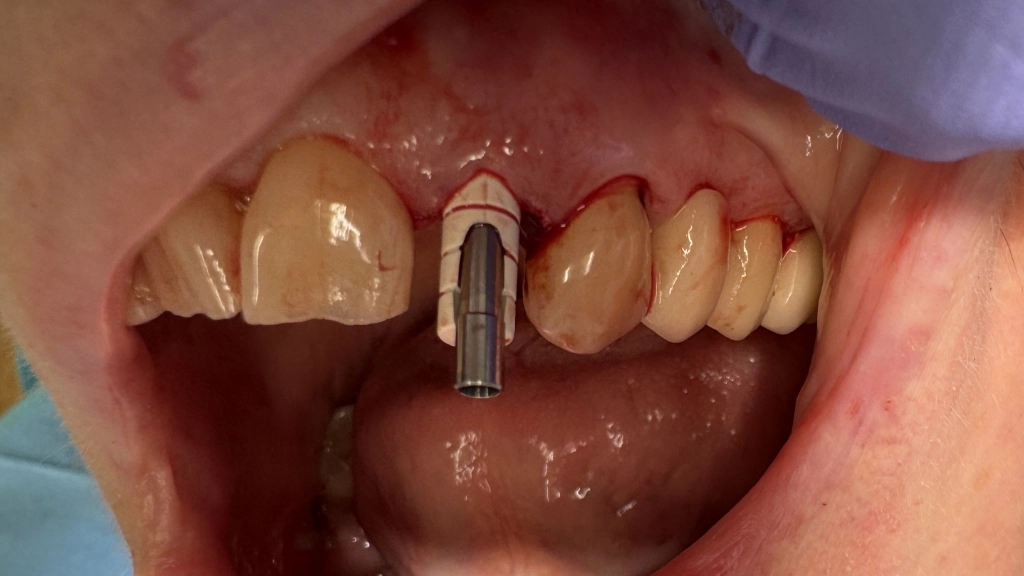 De tandarts plaatst een tijdelijk abutment: