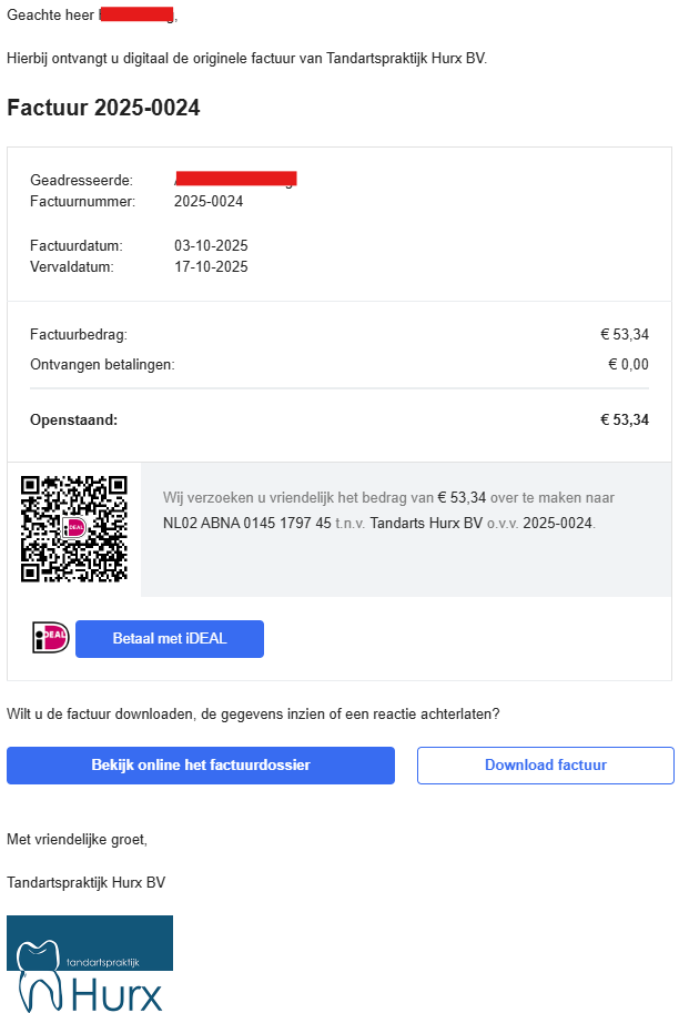 Per mail krijg je de factuur binnen, dit ziet er waarschijnlijk zo uit: