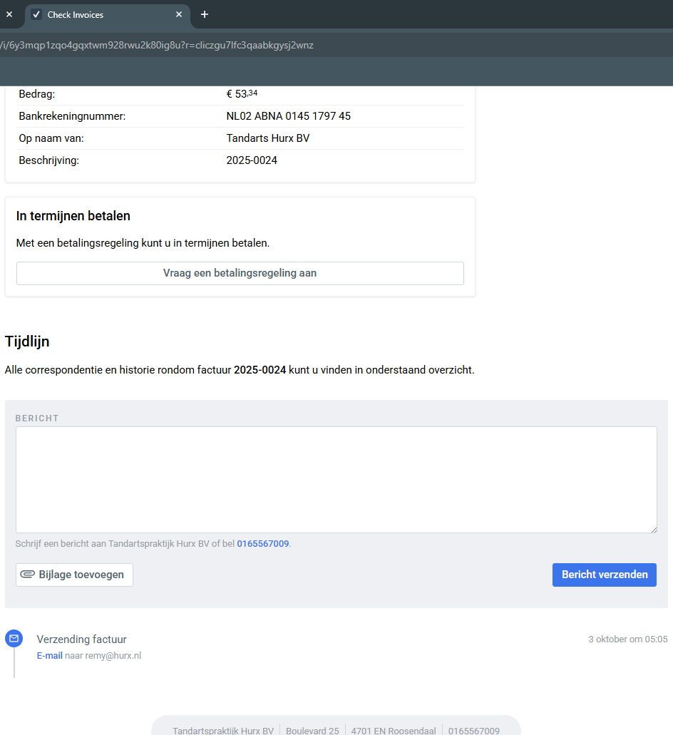 Je kan een bericht achterlaten en evt ook een bijlage meezenden.